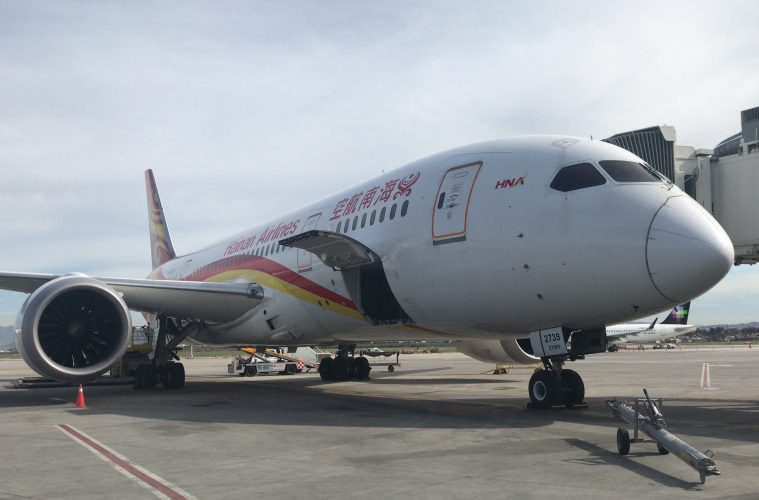 La aeronave de Hainan Airlines es un Boeing 787-8 Dreamliner, con una capacidad de 213 pasajeros, divididos en 36 lugares para la Clase Business y 177 en Clase Turista.